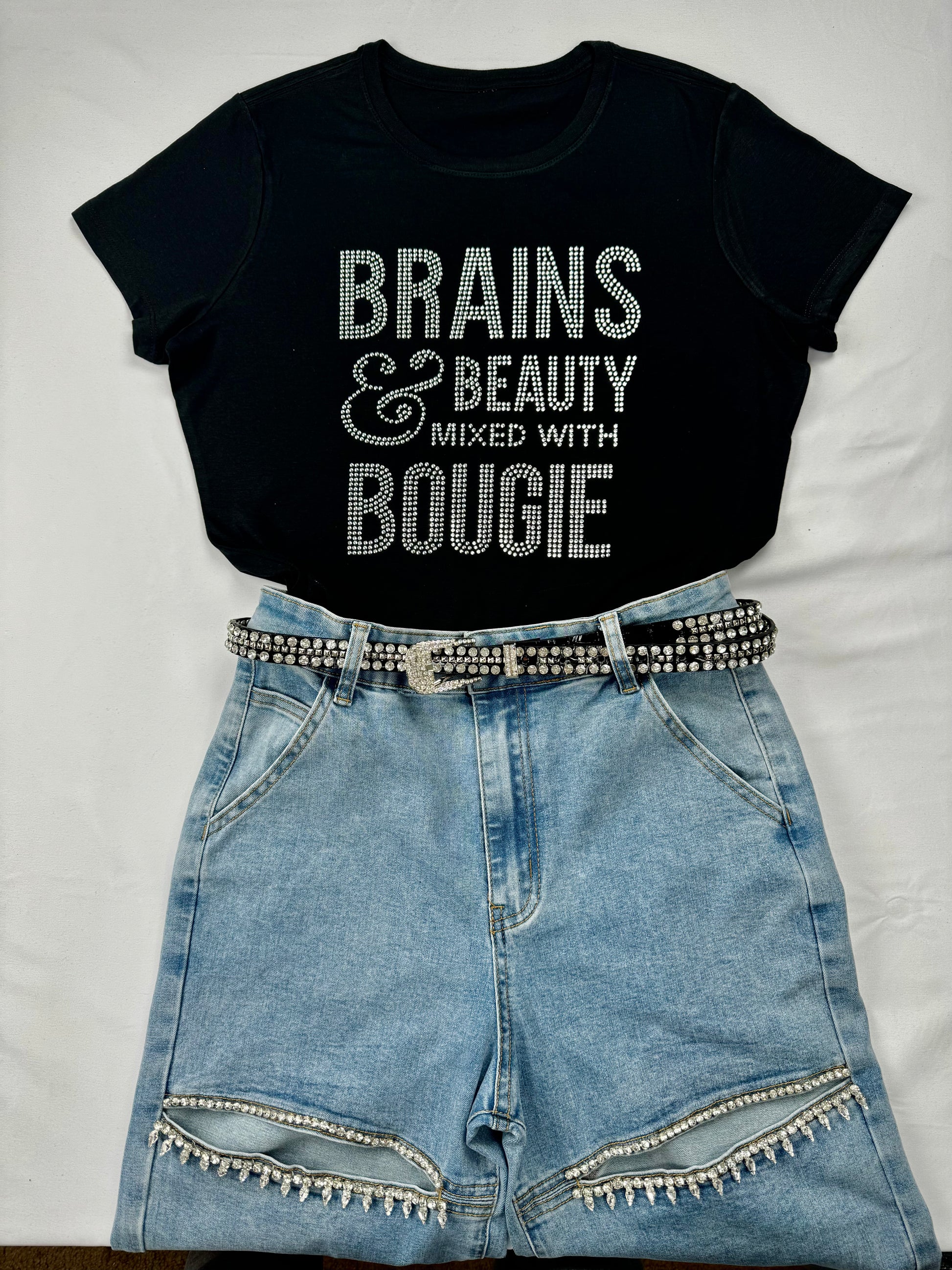 Rows of sparkling, mounted rhinestones highlight this superb accessory.