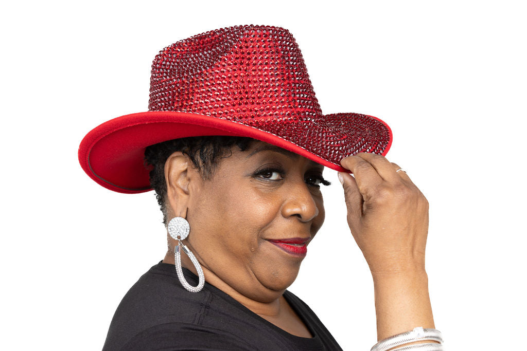 Finish off your outfit with this Rhinestone wide brim Cowboy Hat